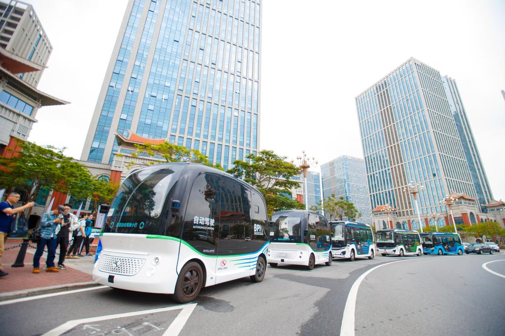 金龍汽車生產(chǎn)的無(wú)人駕駛車輛行駛在道路上。(受訪者供圖)
