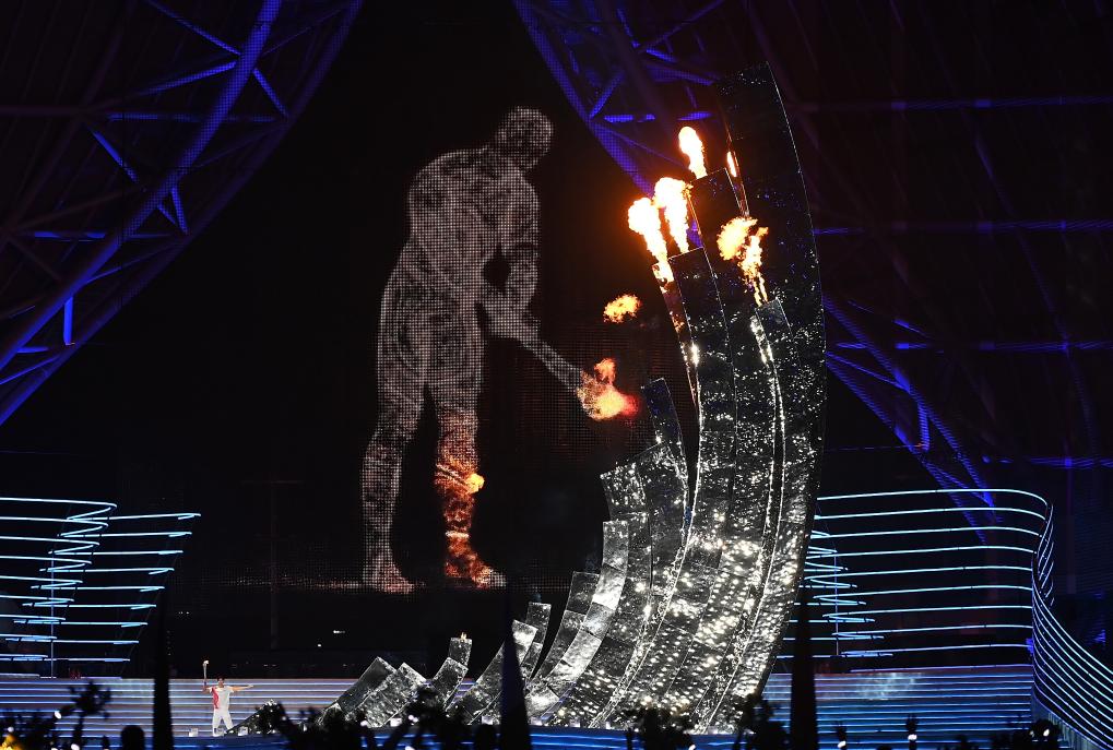9月23日,亞奧理事會(huì)會(huì)旗在開幕式上入場。新華社記者 杜宇 攝 燈光漸暗,屏幕上的短片吸引全場目光:從良渚到現(xiàn)代,“潮涌”會(huì)徽在不同年代不同人的掌心間傳遞。 “我們亞洲,山是高昂的頭;我們亞洲,河像熱血流……”從北京到廣州再到杭州,舉辦過亞運(yùn)盛會(huì)的三座中國城市,在時(shí)光流轉(zhuǎn)中,映射出中國發(fā)展的軌跡不斷向前。 萬涓成水,奔涌成潮。以水為串聯(lián)、潮為意象的精彩表演,讓人們?cè)诔庇恐懈惺苄聲r(shí)代中國與亞洲、與世界的交融激蕩。 前進(jìn)的風(fēng)帆匯入潮中,騰躍的身姿釋放向上向前的力量。浪潮的“力與美”在此交匯。潮,是天地的吶喊,是時(shí)代的強(qiáng)音。弄潮兒向濤頭立,中國人民正是憑著這樣的精神,開創(chuàng)出讓世界刮目相看的奇跡! 大潮退去,蔚為壯觀的“潮汐樹”在灘涂生出。錢塘江潮起潮落地“灌溉”下,自然律動(dòng)生生不息。人與自然和諧共生的圖景徐徐鋪展,“綠水青山就是金山銀山”的理念打動(dòng)人心。 吉祥物“江南憶”破水而出、騰躍而起,激活象征數(shù)字賦能杭州城市建設(shè)的“芯片面板”,660根數(shù)控光源棒點(diǎn)亮“科技之潮”。人群涌入場中,歡快起舞,共赴心潮澎湃的體育嘉年華。 體育與科技交匯,歷史與現(xiàn)實(shí)交融,在這場別具一格的開幕式上,亞奧理事會(huì)代理主席拉賈·蘭迪爾·辛格說:“我相信,參與第十九屆亞運(yùn)會(huì)的每一個(gè)人,都會(huì)在杭州、在浙江收獲一段終生難忘的美好記憶?!?/p> 團(tuán)結(jié)圣火照亮前行之路 萬里長城、泰姬陵、魚尾獅像……網(wǎng)幕上,亞洲各個(gè)國家和地區(qū)的地標(biāo)共同構(gòu)成各美其美、美美與共的亞洲畫卷。 在地球上面積最大的大洲,山川河流讓大家分隔,但“相知無遠(yuǎn)近,萬里尚為鄰”。 采集自良渚古城遺址的火種,經(jīng)過在浙江11個(gè)設(shè)區(qū)市的傳遞后,于當(dāng)晚21時(shí)53分抵達(dá)杭州奧體中心體育場。場地一側(cè)的主火炬塔“錢江潮涌”,由19根形態(tài)各異的立柱排列組成,象征不同時(shí)期舉辦的19屆亞運(yùn)會(huì)。 第一棒火炬手葉詩文高擎亞運(yùn)火炬入場,樊振東、徐夢(mèng)桃、石智勇、李玲蔚、汪順5名火炬手接力奔跑,他們都曾在國際體育舞臺(tái)取得驕人成績。場外,光影匯聚而成的“數(shù)字火炬手”出現(xiàn)在杭城夜空。