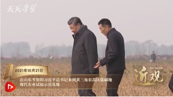 2021年10月21日上午,習(xí)近平總書(shū)記來(lái)到山東東營(yíng),踏上這片廣袤的鹽堿地。