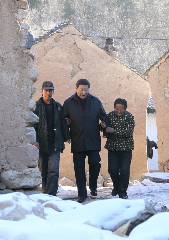 2012年12月30日,習(xí)近平總書(shū)記來(lái)到地處深山的河北省阜平縣龍泉關(guān)鎮(zhèn)駱駝灣村,走進(jìn)困難群眾唐宗秀 (右) 家慰問(wèn)看望。