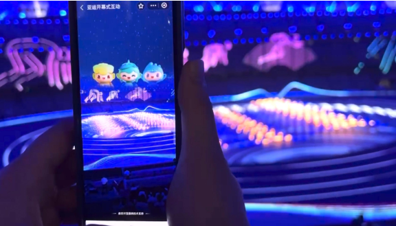 開(kāi)幕式現(xiàn)場(chǎng)的幾萬(wàn)人更是可以通過(guò)手機(jī)AR互動(dòng),放飛許愿燈,召喚亞運(yùn)吉祥物跳入大蓮花體育場(chǎng),這也是世界上首次在大型活動(dòng)現(xiàn)場(chǎng)中采用AR創(chuàng)意互動(dòng),通過(guò)數(shù)字技術(shù)讓現(xiàn)場(chǎng)觀眾成為開(kāi)幕式現(xiàn)場(chǎng)演出的一部分,傳遞全民亞運(yùn)的理念。