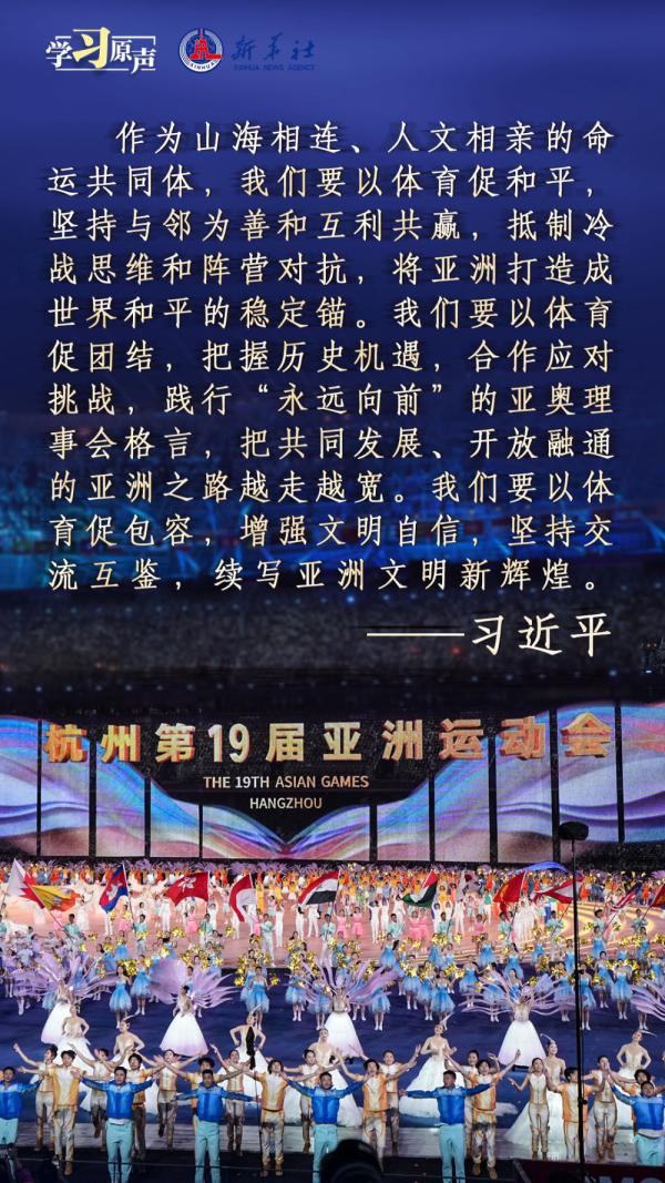 秋分時節(jié),舉世矚目的杭州第十九屆亞洲運動會隆重開幕。“亞洲運動會承載著亞洲人民對和平、團(tuán)結(jié)、包容的美好向往?!绷?xí)近平主席在杭州第十九屆亞洲運動會開幕式歡迎宴會上的致辭,傳遞著熱情友好的情誼,宣示了新時代中國推動亞洲大家庭團(tuán)結(jié)合作的堅定決心,為促進(jìn)亞洲和國際奧林匹克運動發(fā)展、共建亞洲命運共同體注入強(qiáng)大信心與力量。