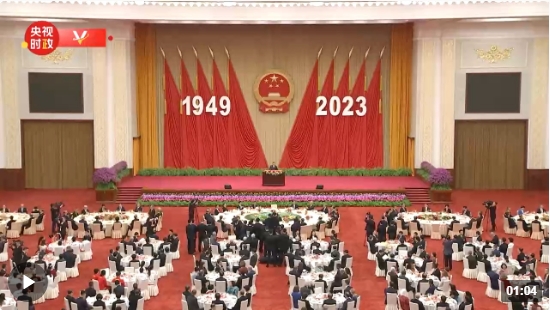 慶祝中華人民共和國(guó)成立74周年招待會(huì)28日晚在人民大會(huì)堂舉行。中共中央總書(shū)記、國(guó)家主席、中央軍委主席習(xí)近平出席招待會(huì)并發(fā)表重要講話。他首先代表黨中央、國(guó)務(wù)院,向全國(guó)各族人民,向中國(guó)人民解放軍指戰(zhàn)員和武警部隊(duì)官兵,向各民主黨派和無(wú)黨派人士,致以崇高的敬意;向香港特別行政區(qū)同胞、澳門(mén)特別行政區(qū)同胞、臺(tái)灣同胞和海外僑胞,致以誠(chéng)摯的問(wèn)候;向關(guān)心和支持中國(guó)現(xiàn)代化建設(shè)的友好國(guó)家和國(guó)際友人,致以衷心的感謝。