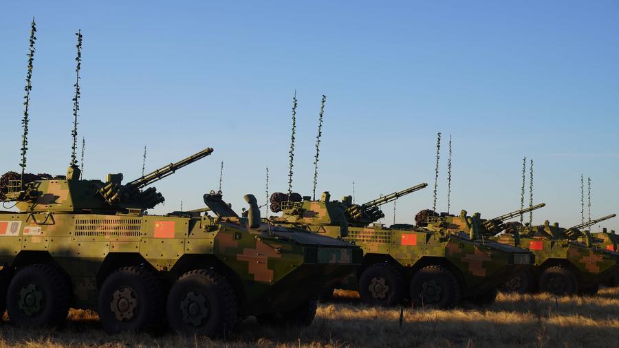2021年9月20日,在俄羅斯奧倫堡州東古茲靶場舉行的“和平使命-2021”上海合作組織聯(lián)合反恐軍事演習(xí)開幕式上,中方參演部隊接受檢閱。新華社記者梅世雄攝