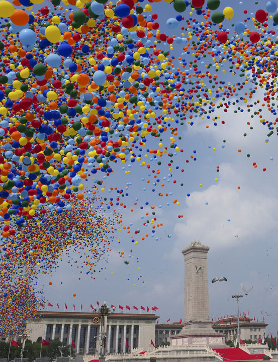 2025年9月3日,紀(jì)念中國人民抗日戰(zhàn)爭暨世界反法西斯戰(zhàn)爭勝利80周年大會(huì)在北京隆重舉行。這是紀(jì)念大會(huì)現(xiàn)場(chǎng)放飛氣球和鴿子。新華社記者 牟宇 攝