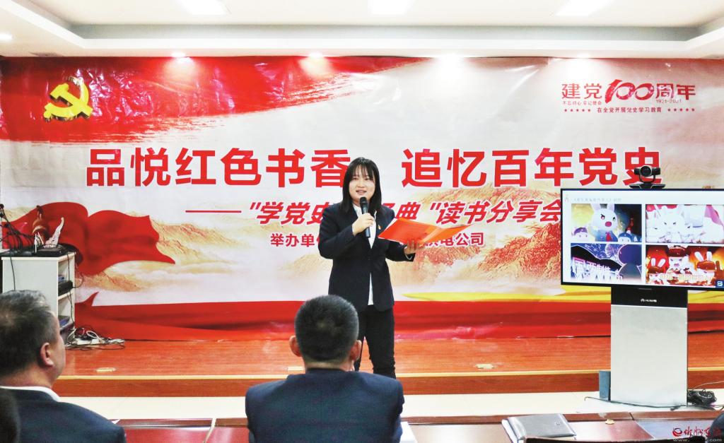 為慶祝中國共產黨成立100周年,推進黨史學習教育走深走實,重溫黨史,感悟初心使命,傳承紅色基因,國網(wǎng)寧武縣供電公司舉辦了“品悅紅色書香 追憶百年黨史”讀書分享會。圖為活動現(xiàn)場。 (張正雨 攝)