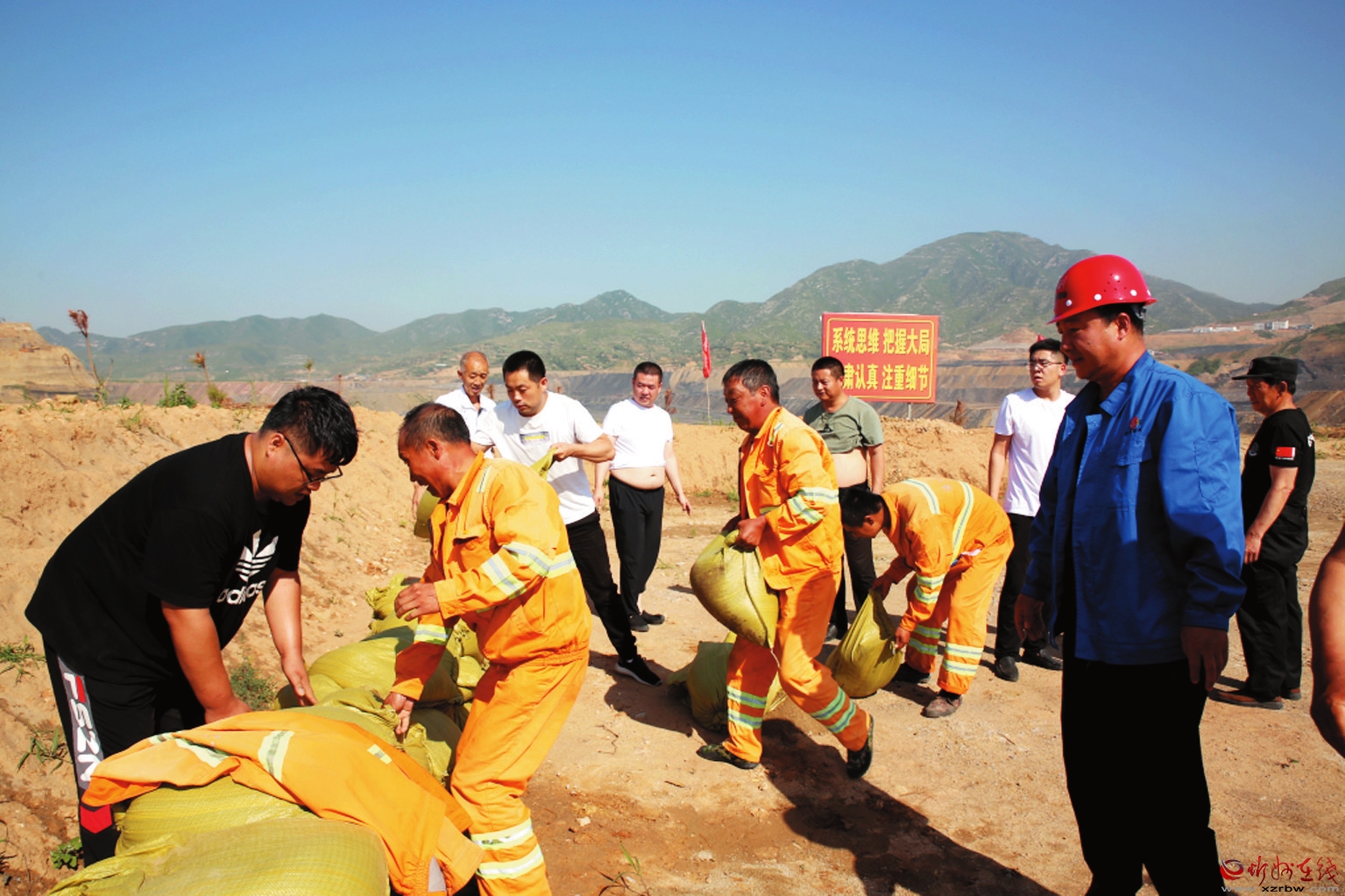 常態(tài)化組織相關(guān)人員對露天煤礦采坑、排土場及上游泄洪通道進行全方位巡察,對可能發(fā)生阻塞河道的地段進行加固引流,及時進行了疏通。沿露天采坑周邊構(gòu)筑攔水壩,對河流積水進行引流,確保安全度汛。圖為應(yīng)急演練現(xiàn)場。 (高文進)