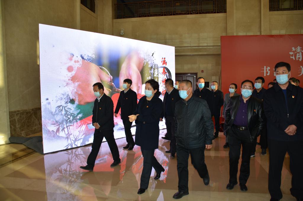 翰墨丹青揚(yáng)正氣,清風(fēng)廉韻沁民心。11月10日,由忻州市紀(jì)委監(jiān)委主辦,河曲縣紀(jì)委監(jiān)委承辦的“清風(fēng)雅頌·廉潔忻州”書畫美術(shù)攝影展河曲縣專場(chǎng),在臨隩公園美術(shù)館開展。市政協(xié)副主席、縣委書記邊東圣出席儀式并作重要講話,縣委副書記、縣長(zhǎng)任鴻賓宣布“清風(fēng)雅頌·廉潔忻州”書法美術(shù)攝影展開展,縣委常委、縣紀(jì)委書記、縣監(jiān)委主任張永明主持開展儀式??h四大班子領(lǐng)導(dǎo)和其他縣處級(jí)領(lǐng)導(dǎo),全縣各鄉(xiāng)鎮(zhèn)、居民辦、黨群、政府、發(fā)改、農(nóng)口、政法、宣傳文衛(wèi)各口黨員干部及全體紀(jì)檢監(jiān)察干部共計(jì)180余人參加了開展儀式。