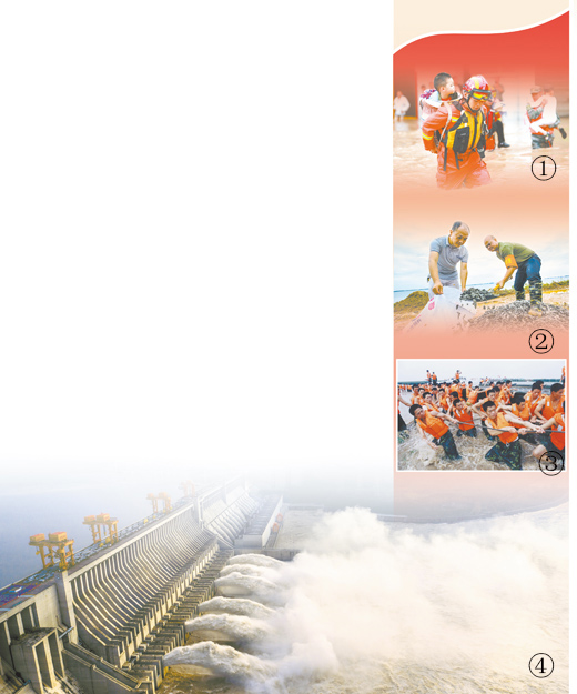 圖①:2020年6月,重慶涪陵區(qū)龍?zhí)舵?zhèn)遭遇暴雨,消防等救援力量營救被困人員。肖樂峰攝(人民視覺) 圖②:2019年7月,鄱陽湖水位全面超警,干部群眾在江西都昌縣南溪圩堤,全力加固堤壩。傅建斌攝(人民視覺) 圖③:1998年8月,黑龍江大慶市遭受嫩江、松花江洪水,人民解放軍奮戰(zhàn)在抗洪搶險一線。小 燕攝(人民視覺) 圖④:2020年8月,長江2020年第4號洪水形成,三峽水利樞紐攔洪削峰。鄭 坤攝(人民視覺) 廣大干部群眾和人民解放軍、武警官兵堅決響應(yīng)黨和政府號召,發(fā)揚不怕累苦、不怕疲勞、不怕犧牲的精神斗志,堅守在防汛抗洪救災(zāi)第一線,涌現(xiàn)了許多先進典型和感人事跡,展現(xiàn)了中國人民眾志成城、頑強拼搏、敢于勝利的英雄氣概,書寫了洪水無情人有情的人間大愛。 ——習(xí)近平總書記2020年8月在安徽考察時強調(diào) “共產(chǎn)黨員跟我上!”“洪水不退人不退!” 1998年夏天,氣候異常,暴雨頻發(fā),長江出現(xiàn)全流域性大水,東北嫩江、松花江也暴發(fā)特大洪水。千鈞一發(fā)之際,在黨中央堅強領(lǐng)導(dǎo)下,全黨、全軍和全國人民緊急行動,廣大黨員干部群眾同解放軍指戰(zhàn)員、武警官兵一起,團結(jié)奮戰(zhàn),力挽狂瀾,同洪水進行了驚心動魄的殊死搏斗。在這場偉大的抗洪搶險斗爭中,形成了“萬眾一心、眾志成城,不怕困難、頑強拼搏,堅韌不拔、敢于勝利”的偉大抗洪精神,成為中國人民彌足珍貴的精神財富。 大江奔涌,抗洪精神接續(xù)傳承。黨的十八大以來,在以習(xí)近平同志為核心的黨中央堅強領(lǐng)導(dǎo)下,我們成功應(yīng)對了長江、嫩江、松花江、黑龍江等流域大洪水,保障了人民群眾生命安全、大中城市和重要基礎(chǔ)設(shè)施防洪安全,為經(jīng)濟社會平穩(wěn)有序發(fā)展提供了堅實支撐。 習(xí)近平總書記指出:“廣大干部群眾和人民解放軍、武警官兵堅決響應(yīng)黨和政府號召,發(fā)揚不怕累苦、不怕疲勞、不怕犧牲的精神斗志,堅守在防汛抗洪救災(zāi)第一線,涌現(xiàn)了許多先進典型和感人事跡,展現(xiàn)了中國人民眾志成城、頑強拼搏、敢于勝利的英雄氣概,書寫了洪水無情人有情的人間大愛?!?/p> 不怕困難、頑強拼搏,共產(chǎn)黨員這個共同的名字在驚濤駭浪中叫響 1998年8月,江西九江市新港鎮(zhèn)江磯村遭遇洪水。 管涌、滲水、滑坡。時任江磯村黨支部書記陳申桃一次次跳入水中,夯土石、搏風(fēng)浪、堵潰口,排除大小險情100多處——“水不退,不離堤。” 2020年夏天,江磯村再遇洪災(zāi)。危急時刻,陳申桃的兒子、防汛抗洪黨員突擊隊成員陳建挑起重?fù)?dān),加入搶險隊伍,和父親并肩護堤——“有險情,咱就在?!?/p> 一個個緊要關(guān)頭,一代代共產(chǎn)黨員挺身而出。抗洪精神在一次次江河安瀾、百姓安居中錘煉鑄就。 這是不畏艱險、沖鋒陷陣的拼搏精神。 “黨員跟我上!”1998年7月,江西鄱陽縣磨刀石鄉(xiāng),洪水沖破圩堤,時任北關(guān)村黨支部書記胡義和帶著大家跳入水中,用身軀壓住沙袋,筑起一道堅固的防洪墻。 像胡義和一樣,九八抗洪期間,長江沿線上堤搶險的干部群眾高峰時達(dá)670多萬人,縣級以上領(lǐng)導(dǎo)干部1.5萬多人。2016年抵御長江流域洪水,湖北、湖南、江西、安徽、江蘇等地廣大干部群眾齊上陣,累計投入抗洪搶險人員1749萬人次。 一次次洪水肆虐,總有黨員干部帶領(lǐng)群眾,不顧安危,不舍晝夜,用身軀抵擋滾滾濁浪,用生命守護堤防安全。 這是守土有責(zé)、履職盡責(zé)的擔(dān)當(dāng)精神。 “守大堤就是守生命線?!苯骶沤胁裆^(qū)江洲鎮(zhèn)黨委書記陳世超說,江洲鎮(zhèn)四面環(huán)江,每逢汛期,黨員干部全體到崗,全力巡堤。全鎮(zhèn)設(shè)立171座防汛哨所,安排專班24小時巡堤,確保萬無一失。 “有散浸,快來人!”2016年7月的一個深夜,湖北嘉魚縣渡普鎮(zhèn),正在東湖堤防上值守的葛慶彪聽到呼喊,迅速趕往現(xiàn)場,和村民們一起填碎石、壓彩條布,奮戰(zhàn)一整夜,成功化解險情。每到汛期葛慶彪總會堅守大堤。 每年汛前,國家防總都組織通報全國各省防汛抗旱防臺風(fēng)的行政責(zé)任人和大江大河重點工程的行政責(zé)任人,督促落實防汛責(zé)任。從大江大河,到重點水利工程、重點防洪城市,再到中小河流,責(zé)任層層壓實,防汛抗洪一線,各級黨員干部巡堤、值守,扛起重任。 這是百折不撓、敢于勝利的奮斗精神。 “一定要堵上口子!”1998年7月底,在湖南岳陽市云溪區(qū)陸城鎮(zhèn)新港村,長江大堤外坡發(fā)生坍塌,時任村黨支部書記戴勝生一聲令下,黨員干部紛紛跳進急流,激戰(zhàn)洪水。 “趕快清理閘門!”今年7月,臺風(fēng)“煙花”登陸后,江蘇江都水利工程管理處青年黨員突擊隊隊員王德俊、呂鵬在巡查中發(fā)現(xiàn)險情,頂著疾風(fēng)驟雨爬上閘門排險,確保行洪順暢。 困難在哪里,共產(chǎn)黨員就釘在哪里;險情在哪里,共產(chǎn)黨員就沖到哪里。黨員責(zé)任堤、黨員突擊隊、黨員巡查隊……在一次次抗洪搶險中,廣大黨員干部成為風(fēng)雨中的逆行者、驚濤中的守護者。 一名黨員就是一面旗幟,一個支部就是一座堡壘?!皞ゴ蟮目购榫癫粩鄠鞒?,激勵著一代又一代人砥柱中流。共產(chǎn)黨員,成為抗洪前線最響亮的名字?!彼克禐?zāi)害防御司司長姚文廣說。 萬眾一心、
