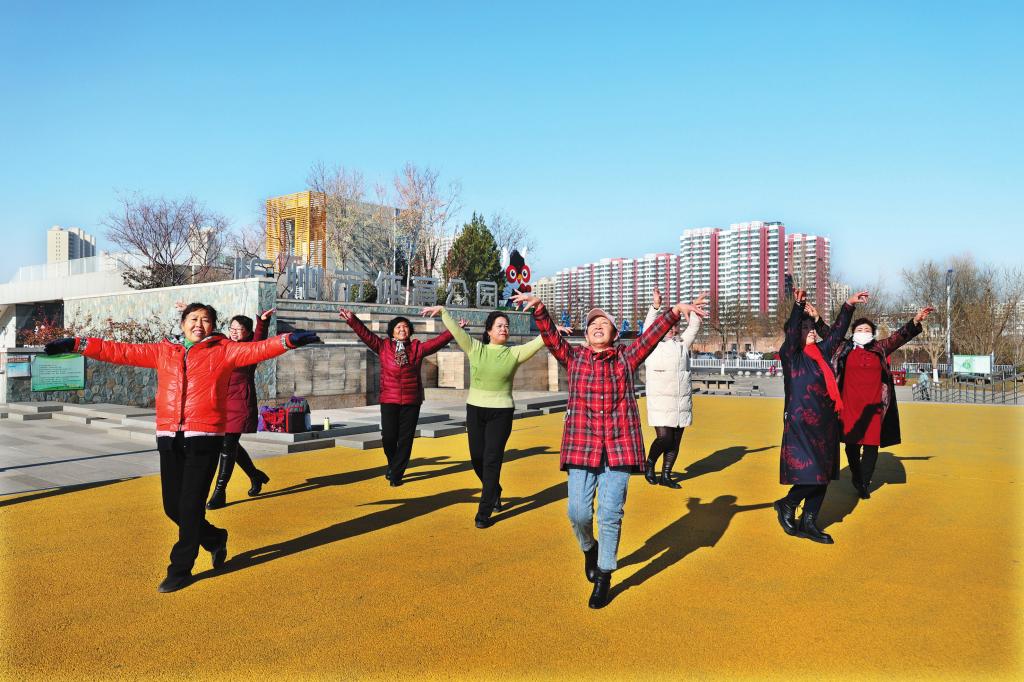 11月24日,舞蹈愛(ài)好者們?cè)谑畜w育公園廣場(chǎng)上翩翩起舞。近年來(lái),全民健身理念在我市深入人心,越來(lái)越多的市民從體育運(yùn)動(dòng)的旁觀者變身參與者。 (張存良 攝)