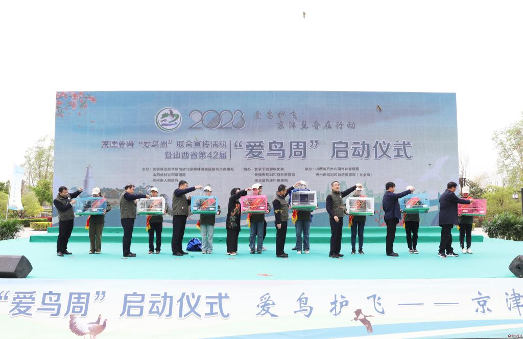 4月20日,京津冀晉“愛鳥周”聯(lián)合宣傳活動暨山西省第42屆“愛鳥周”在忻州市云中河景區(qū)啟動。國家林草局駐北京森林資源監(jiān)督專員辦事處副專員閆春麗,山西省林業(yè)和草原局局長袁同鎖,市委副書記、市長李建國,京津冀晉四省林草部門、山西省各市林草部門負責人,野生動物保護志愿者等參加啟動儀式。