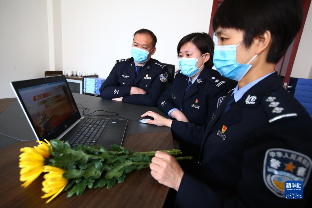 4月4日,山東省濟南市公安局市中區(qū)分局桿石橋派出所組織民警開展網(wǎng)上祭奠英烈活動。