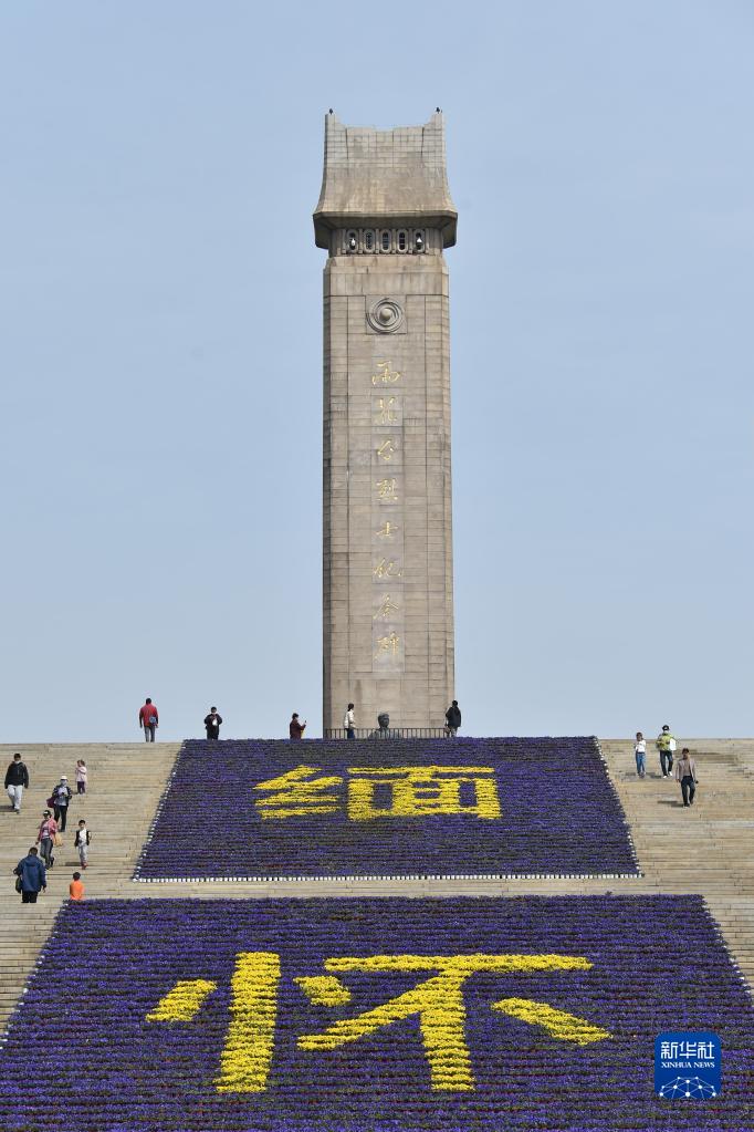4月4日,人們來到南京雨花臺烈士紀念碑前緬懷英烈。