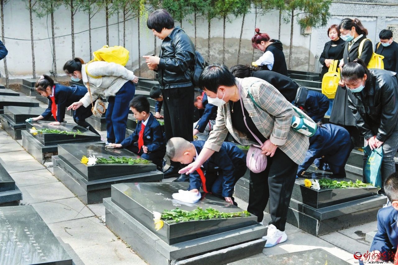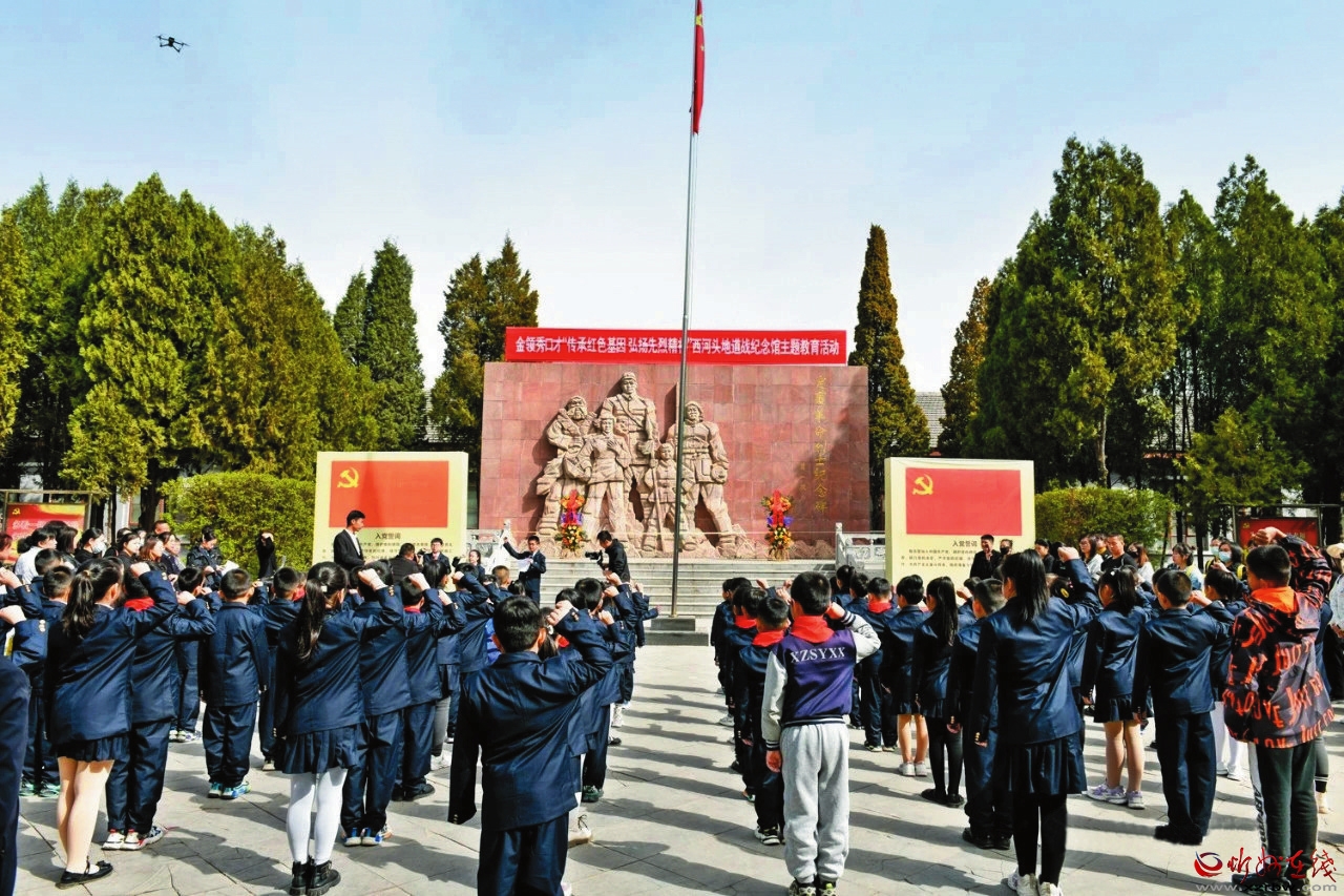 在西河頭地道戰(zhàn)紀念館英雄紀念碑前,大家聆聽革命先烈故事,向烈士紀念碑敬獻花圈,寄托對革命先烈的無限哀思和敬仰之情。 本報通訊員攝