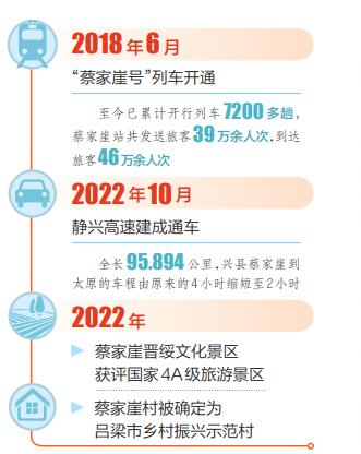 和王先生一樣,近年來(lái),很多游客選擇乘坐火車(chē)到蔡家崖旅行,而蔡家崖的村民們很多會(huì)乘坐火車(chē)到外地上學(xué)和工作。據(jù)蔡家崖火車(chē)站值班站長(zhǎng)蔣偉介紹,自2018年太原至蔡家崖的列車(chē)開(kāi)通以來(lái),已累計(jì)開(kāi)行7200多趟,該站發(fā)送旅客39萬(wàn)余人次,到達(dá)旅客46萬(wàn)余人次。