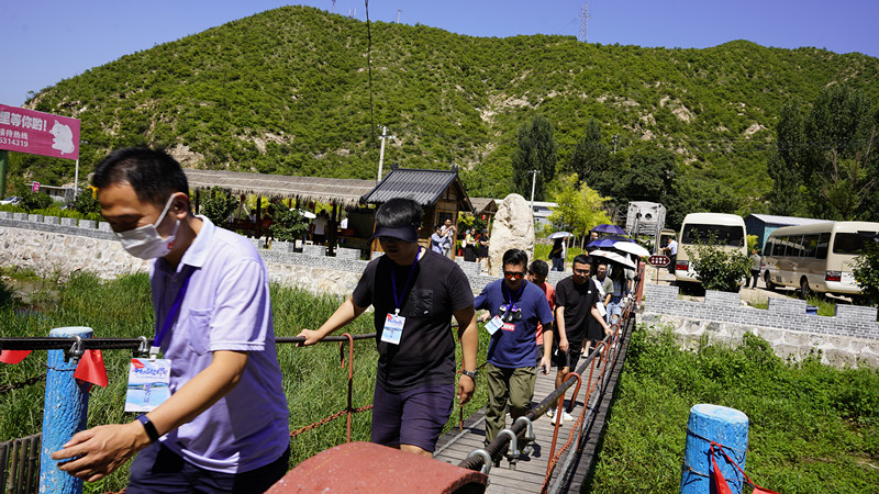黃河新聞網(wǎng)訊(記者周昱麗 劉帥文)一墻一文化,一畫一風景。五顏六色的墻體彩繪,在清風拂綠中若隱若現(xiàn),宛如散落在太行深處一幅斑駁的畫卷,一個個構(gòu)思奇妙、通俗易懂的圖案寓意深刻,生動形象地展現(xiàn)出當?shù)刈匀伙L景和特色民俗風情,山水映襯下的山西省陽泉市盂縣貓鋪村美麗鄉(xiāng)村景象已初見端倪。7月23日,“爭先崛起看中部”——第十七屆全國網(wǎng)絡(luò)媒體山西行來到盂縣貓鋪村參觀采訪。 近年來,貓鋪村科學(xué)謀劃、探索創(chuàng)新,緊緊抓住產(chǎn)業(yè)這個“牛鼻子”,因地制宜,依托綠水青山的“美麗資源”,重點打造現(xiàn)代鄉(xiāng)村旅游業(yè),開辟了“農(nóng)業(yè)強村、生態(tài)立村、文旅興村”的發(fā)展思路,從過去的單一種植業(yè)逐步轉(zhuǎn)型為多元融合發(fā)展。 在這里,內(nèi)有被譽為小五臺山的貓溝、布滿原始森林的東溝、古老的桃園、神奇的土泉;外有梁家寨溫泉療養(yǎng)院、龍?zhí)闷俨?、大汖古村、滹沱河、彭真渠等著名景點。它們彼此呼應(yīng)、相連成片,共同構(gòu)成陽泉旅游業(yè)的璀璨明珠。每到水果成熟季節(jié),占地4600平方米的晉農(nóng)之窗博覽園既可以供游人采摘和野外燒烤,也可作為農(nóng)耕文化教育場所,讓人們寄情于山水,在游玩中學(xué)到知識。