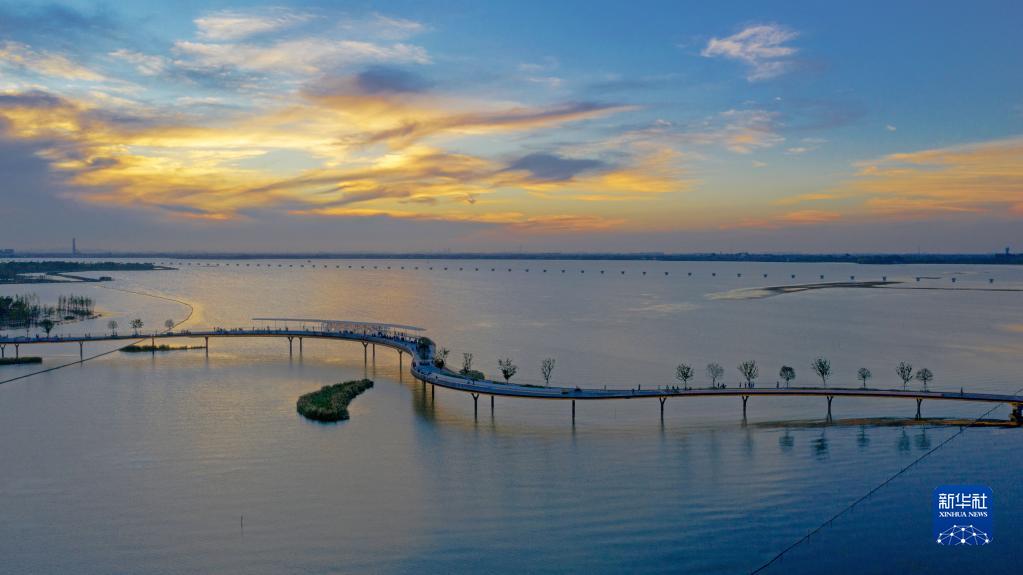 橫跨上海江蘇的元蕩慢行橋下,碧波蕩漾、魚翔淺底,兩岸“生態(tài)走廊”徐徐展開岸綠景美的江南水鄉(xiāng)畫卷。滬蘇兩地一體治理、共同打造的元蕩生態(tài)岸線全長23公里,今年將全線貫通。