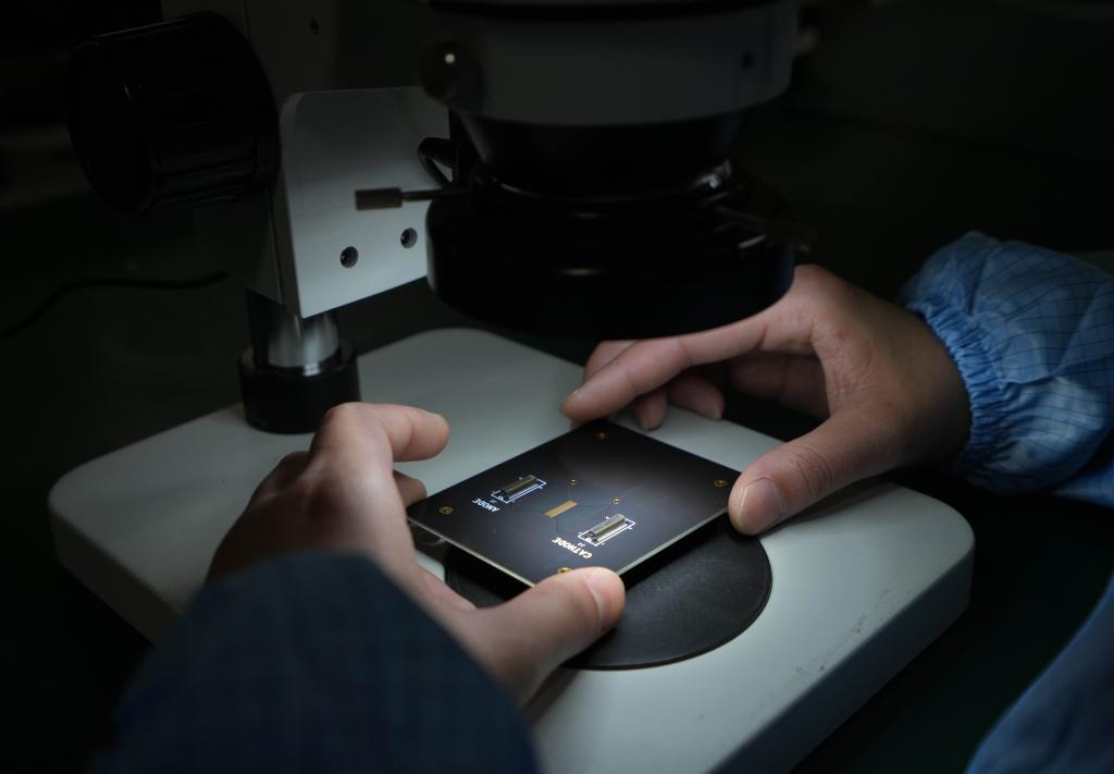 6月2日,工作人員在蘇州光電技術研究院的封裝測試公共服務平臺車間內檢測一塊激光雷達芯片。新華社記者 李尕 攝