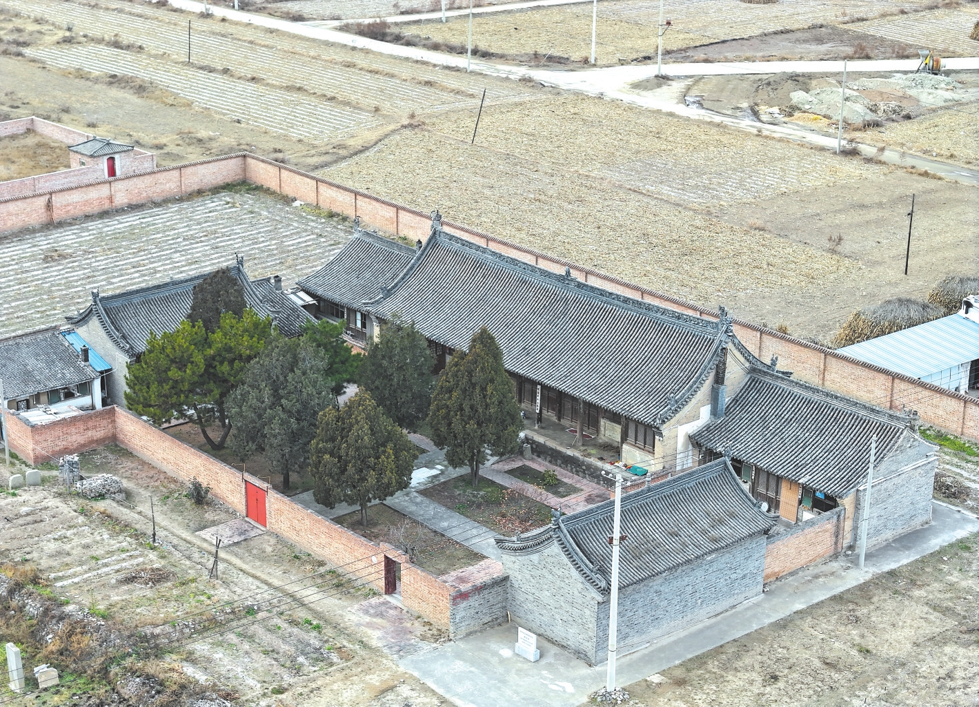 南峪口壽寧寺位于繁峙縣東山鄉(xiāng)南峪口村西北。該寺坐北朝南。南北長(zhǎng)29.27米,東西寬42.51米,占地面積約1244.27平方米。創(chuàng)建年代不詳,據(jù)寺內(nèi)碑刻記載,金覺悟和尚擴(kuò)建,元大德年(1297—1307)重建寺院;明嘉靖三十五年(1556)重修,現(xiàn)存為清代建筑。一進(jìn)院布局,中軸線僅存正殿,兩側(cè)為耳殿,2009年寺院僧人重建了東西配殿。正殿坐于石砌臺(tái)基上,基高0.9米。正殿面寬七間,進(jìn)深四椽,五檁前廊式構(gòu)架,四架梁前對(duì)單步梁,灰陶筒瓦屋面,單檐硬山頂,前檐設(shè)裝飾性斗拱,斗拱一斗三升插假昂,前檐明、次、梢間均隔扇門,盡間為檻墻上置格扇窗。東西耳殿面寬三間,進(jìn)深三椽,四檁前廊式構(gòu)架,三架梁前對(duì)單步梁,灰陶筒瓦屋面,單檐硬山頂,明間設(shè)四扇六抹隔扇門。寺廟主院院墻外存元至正九年(1349)宗主行業(yè)碑1通和明嘉靖三十五年(1556)碑1通。文物建筑建造精巧,建筑別致,用材適度,結(jié)構(gòu)科學(xué)合理,展現(xiàn)了古代工匠深厚的文化底蘊(yùn)和高深的藝術(shù)造詣,具有較高的歷史、科學(xué)和藝術(shù)價(jià)值。2022年5月11日,壽寧寺被公布為忻州市第三批市級(jí)文物保護(hù)單位。