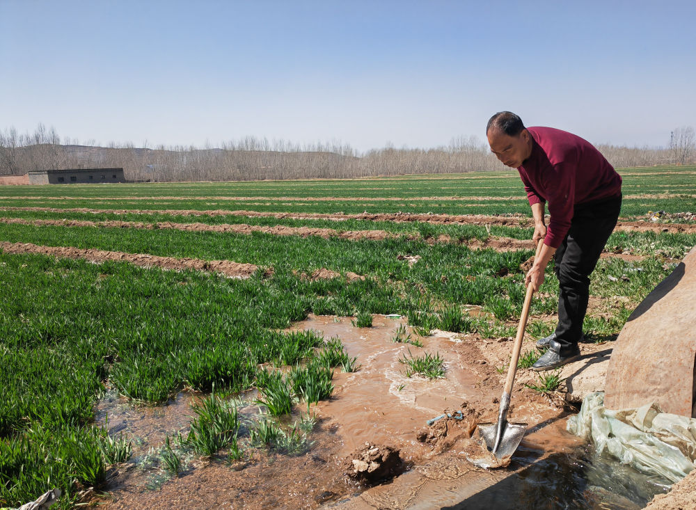 由于去年冬天這里大范圍降雪,土壤墑情好,春澆比往年推遲了一個月。