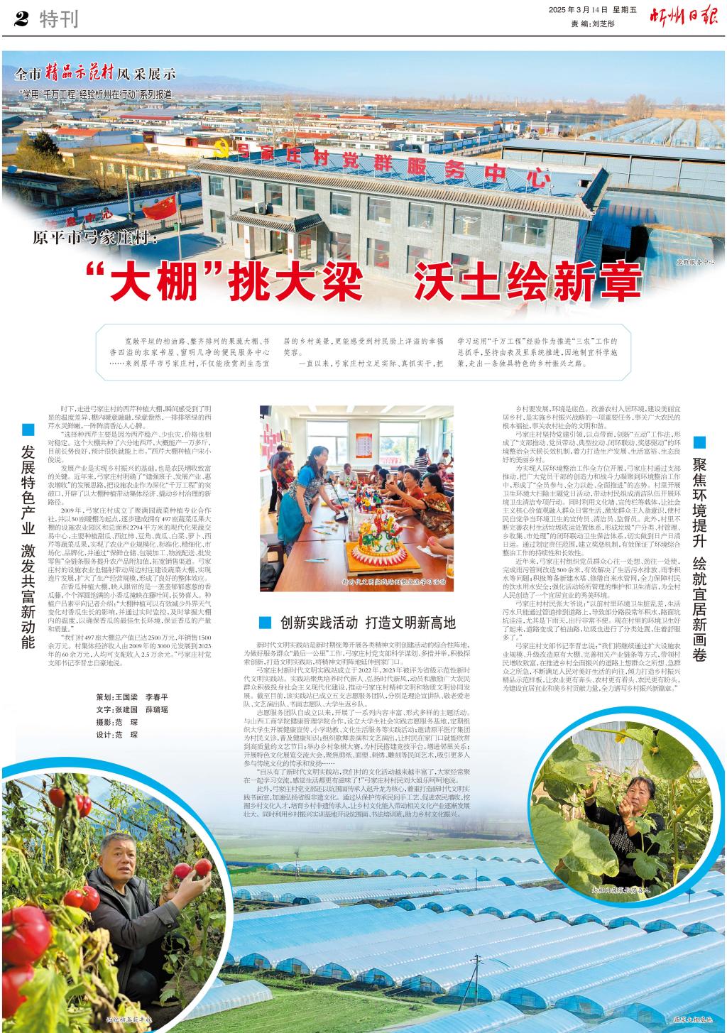 寬敞平坦的柏油路、整齊排列的果蔬大棚、書香四溢的農(nóng)家書屋、窗明幾凈的便民服務(wù)中心……來到原平市弓家莊村,不僅能欣賞到生態(tài)宜居的鄉(xiāng)村美景,更能感受到村民臉上洋溢的幸福笑容。